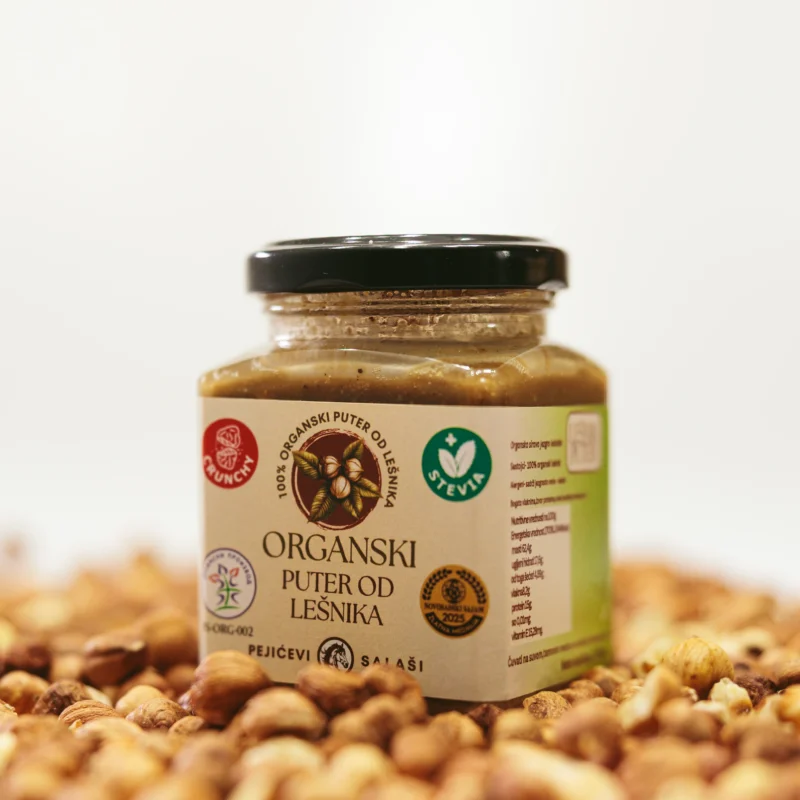 Otkrijte raznovrsnost naše ponude organskog lešnika. Od sirovog jezgra za grickanje i kuvanje, do lešnikovog ulja bogatog omega masnim kiselinama i kremastog putera idealnog za doručak. Svi proizvodi su 100% organski i proizvedeni u Srbiji.